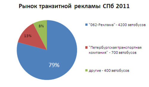Эксклюзивные контракты на размещение рекламы с крупнейшими коммерческими транспортными компаниями «Питеравто» и «Третий парк» (заключившими договоры на обслуживание городских автобусных перевозок с администрацией города на 2011-2015 гг) на очередной долгосрочный период агентством «062-Реклама» были продлены в начале 2011 года. Реклама на муниципальном транспорте Петербурга, в связи с отменой конкурса весной 2011 года, не размещается.