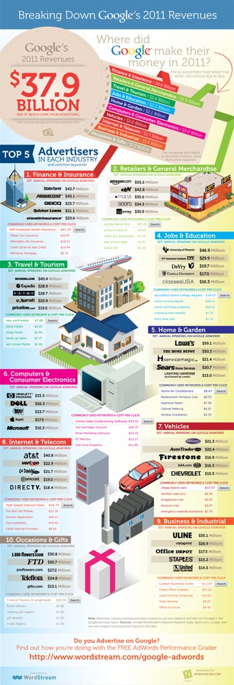 60% доходов от рекламы Google получает от десяти товарных категорий