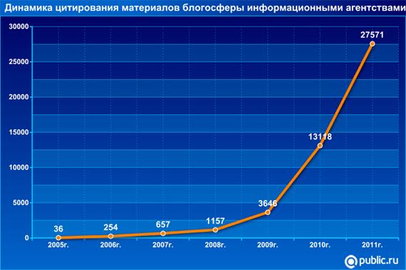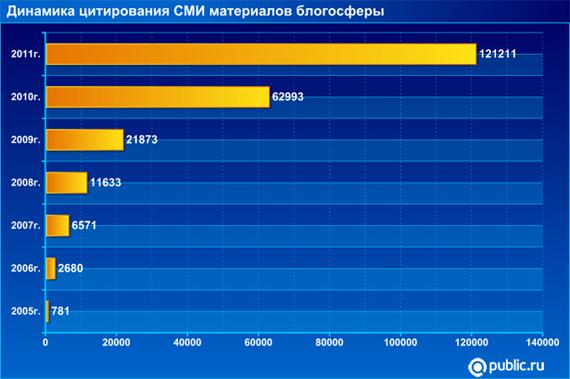 Только за последний год цитируемость материалов блогосферы и сервисов общения в традиционных СМИ увеличилась вдвое