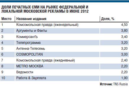 По данным TNS Media Intelligence, за июнь 2012 года рынок локальной рекламы во всех печатных СМИ упал на 3,3% по сравнению с июнем 2011 года. При этом объемы рекламы в «Metro Москва» выросли на 16,7%, что позволило газете увеличить свою долю на столичном рынке с 9,1% в июне 2011 года до 11% в июне 2012 года. Аналитики печатных СМИ видят перспективу в региональных проектах газеты. В сетевом варианте они могут быть привлекательны как для традиционных газетных рекламодателей (автомобили, банки, лекарственные препараты, услуги и прочее), так и для производителей товаров массового спроса категории, полагает Евгений Абов, вице-президент Гильдии издателей периодической печати.