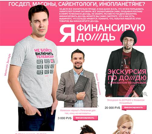 Это не первый случай,когда СМИ открывают интернет- магазин товаров,брендированных темами собственных публикаций или передач. Подобный проектсуществует на телеканале «Дождь» (признан в России иноагентом).