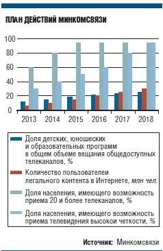 Прогноз по увеличению доли детских, юношеских и образовательных программ в общем объеме вещания содержится в плане действий Минкомсвязи на 2013—2018 годы. Между тем ведомство не будет насильно принуждать телеканалы показывать детские программы, заявил РБК daily Алексей Волин. Он надеется, что в течение года Госдума примет законопроект, предполагающий увеличение времени для рекламы в детских и образовательных программах.