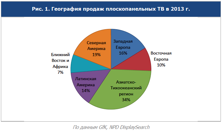 По оценкам J’son & Partners Consulting, в 2013 г. в мире было продано 234 млн телевизоров, рост по сравнению с 2012 г. составил 1%. Из 234 млн новых телевизоров, по данным Strategy Analytics, 76 млн устройств поддерживали функционал Smart TV (33% всех плоскопанельных ТВ)