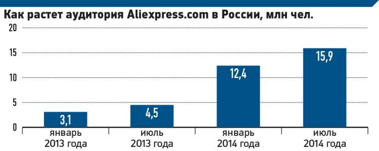 Сервис Aliexpress.com был запущен китайской группой Alibaba в 2010 году, а в мае 2012-го вышел на российский рынок. В ноябре того года его ежемесячная аудитория, по данным TNS, составляла 2,7 млн россиян — то есть менее чем за два года она выросла почти вшестеро. Популярность Aliexpress.com в России подтверждает и интерес к сервису в социальной сети «ВКонтакте»: у группы «Aliexpress.com по-русски» более 1 млн подписчиков. В русскоязычном Facebook интерес к сервису небольшой — у соответствующей страницы только 37,9 тыс. «лайков».