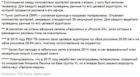 Прирост реализованного рекламного инвентаря в первые два месяца 2015 года зафиксирован у трех телеканалов. Причем у «Пятницы» сразу на 15%, до 6,3 тыс. GRP, в целевой аудитории «Россияне 14–44 лет». Среднесуточная доля целевой аудитории вещателя за этот период увеличилась на 0,3 п.п., до 2,5%. Такой же прирост своей целевой аудитории показал, к примеру, и «ТВ Центр», но его продажи рекламы в натуральном выражении упали на 21%, до 8,9 тыс. GRP.