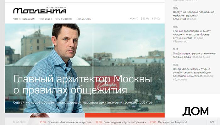 «Мослента» — сайт о понятной Москве. Редакция проекта будет каждый день рассказывать читателям о том, как функционирует город и как им пользоваться, по каким правилам он живет, какие решения в нем принимаются и как на них повлиять