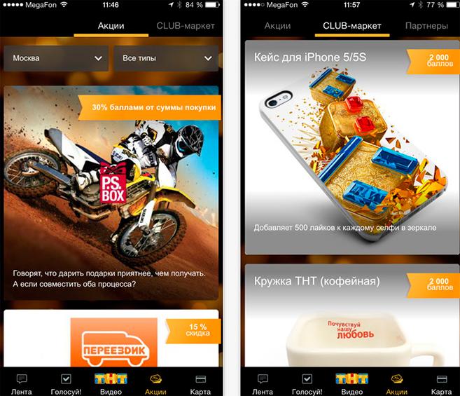 Как рассказала Татьяна Кудакова, заместитель директора департамента Интернета телеканала ТНТ, за каждый поставленный лайк, репост, оставленный комментарий или отданный голос за участников проектов телеканала, пользователи получают баллы. За баллы участники клуба получают подарки от ТНТ: они могут побывать на съемках сериала, встретиться со звездой, посетить закрытые мероприятия ТНТ или поехать на фестиваль Comedy Club. ТНТ-CLUB предоставляет своим пользователям скидки в торговых сетях и онлайн-магазинах, ресторанах и кафе, фитнес-клубах и кинотеатрах.