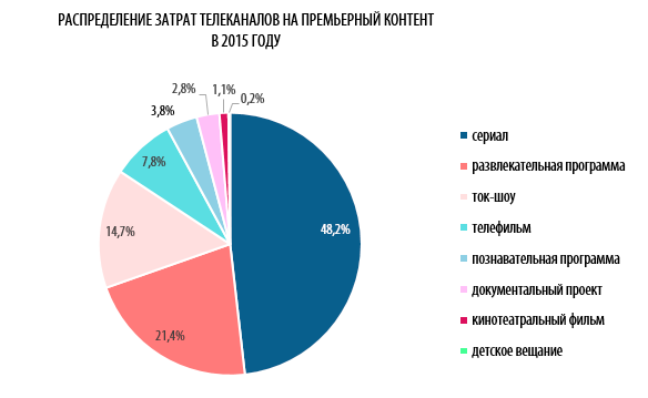Компания KVG Research подсчитала количество часов премьерного российского продюсируемого контента, пишет «Коммерсант». Новый лидер по объему премьерного контента — «Солярис Промо Продакшн» — по итогам прошлого года получил 930 часов. Покупателем выступил канал ТНТ, помимо ключевого проекта компании реалити-шоу «Дом-2» в эфире шла программа «Перезагрузка». Уже в этом году СПП произвела для ТНТ сериал «Остров».