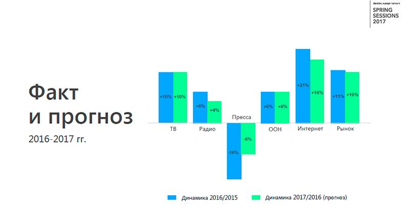 В мегапродавце «Национальный рекламный альянс» (НРА) говорят, что сейчас продажи рекламы на телевидении увеличиваются в ожидаемом темпе – 10%. Темпы роста несколько снизились по сравнению с прошлым годом. При этом НРА выражает надежду к концу 2017 года опередить свой прогноз
