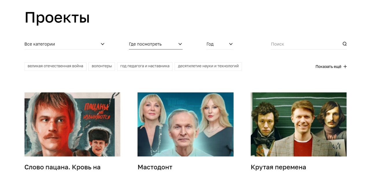 ИРИ также рассказал про флагманские проекты, которые выйдут в январе-мае2024 г. — это сериалы «ГДР», «10 дней до весны», «20/22», «По зову сердца»,«Адмирал Кузнецов», «Точка ноль», «Нефть», «Моногодетство», «ЛюбопытнаяВарвара», «Казачок», «Все ОК», «Курьеры», «Три друга, клад и матрос Кошка»,аниме «Невский», игры «Смута», Sparta, «Последний край».