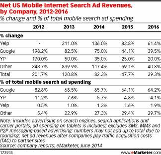 Сейчас мы чаще пользуемся поиском в приложениях на наших смартфонах и планшетах, сообщается в новом отчете eMarketer. Это означает серьезное падение прибыли для многих крупных поисковиков, таких как Google, Bing и Yahoo. eMarketer пишет, что выручка мобильной рекламы Google упала на целых 17% по сравнению с 2012 годом. Всего два года назад поисковый гигант занимал 82,8% поискового рынка и генерировал 2,24 млрд $ прибыли