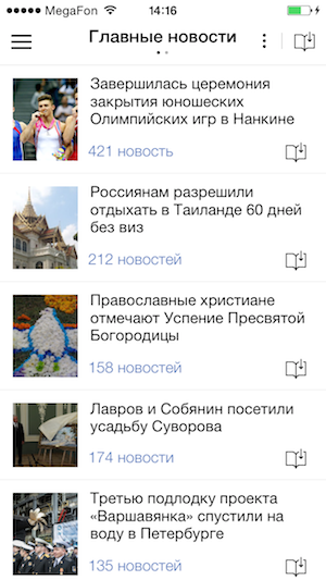 О самом важном «Яндекс.Новости» сообщают прямо на главном экране. А чтобы почитать, например, только о событиях в сфере науки или культуры, достаточно открыть нужную рубрику. Приложение позволяет также настроить личную ленту новостей — в разделе «Мои новости» — и читать только то, что интересно.