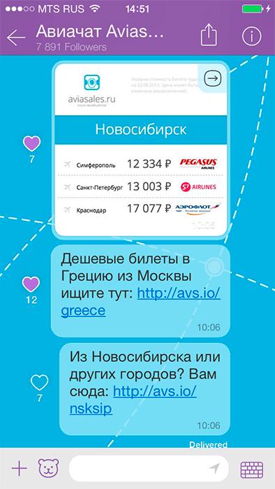 Туристический поисковик Aviasales также решил попробовать Viber.