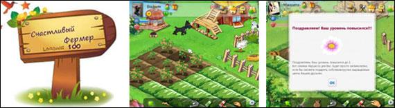 Сегодня «Счастливый фермер» — первая в рейтинге популярности среди приложений социальной сети «Вконтакте». Простой, но приятный дизайн, несложный, но интересный игровой процесс, а также возможность взаимодействовать и соревноваться со своими друзьями — все это позволило игре собрать многочисленную аудиторию поклонников, многие из которых играют ежедневно.В самом начале игры каждый пользователь получает в свое распоряжение виртуальный малый бизнес — небольшую ферму и стартовый капитал. Он может выращивать овощи и фрукты, получать от курицы яйца, молоко от коровы, сало от свиньи и т.п. Игрок борется с засухой, сорняками, вредителями, а также получает деньги за проданные продукты и опыт, который влияет на уровень фермера.