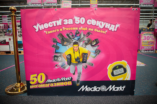 Крупномасштабная акция «Унести за 50 секунд», организованная сетью Media Markt, прошла 6 июля в 22 российских городах*. Из 65 000 заявок жюри выбрало по одному победителю в каждом городе присутствия сети, и все они получили свои 50 секунд «халявы»: любая техника, вынесенная из магазина за это время, досталась им абсолютно бесплатно