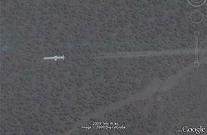 Согласно Google Earth, на этой фотографии видна крылатая ракета, запущенная во время военных учений в горах штата Юта. Кажется, у ракеты действительно есть крылья. Хотя, многие считают, что это просто самолет.