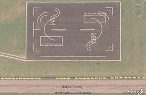 Поле очень похоже на место для приземления НЛО. Однако, если верить Министерству обороны Великобритании, самом деле это просто площадка для мотоциклов. Некоторые рассуждают, что это может быть чем-то вроде калибровочного инструмента для спутников. Утверждается, что подобные странные обозначения также были найдены на военно-воздушных базах в США и Англии.
