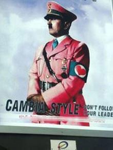 На улицах сицилийского города Палермо и на автобусных остановках появилась реклама новой линии модной одежды для молодежи. На плакатах изображен Адольф Гитлер в розовой форме, а на нарукавной повязке у него вместо свастики изображено красное сердце, которое в публикации в Daily Telegraph называется 'пошлым'. Рекламный лозунг гласит: 'Измени стиль - не следуй за своим лидером'.