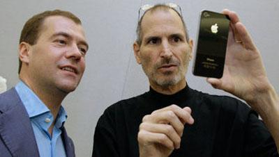 В это же день Медведев встретился с главой компании Apple Стивом Джобсом. В ходе встречи в штаб-квартире компании глава Apple познакомил президента России с новейшими разработками и подарил ему последнюю версию «яблочного» смартфона, заметив при этом, что в продажу iPhone 4 поступит только завтра.