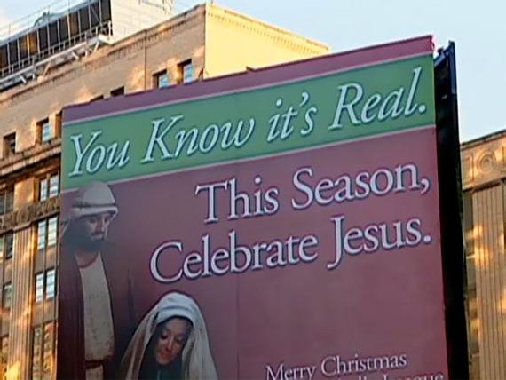Два рекламных щита в Нью-Йорке за несколько дней раскололи чуть ли не всю Америку - на тех, кто хочет и будет праздновать Рождество, и тех, кто считает, что праздник им навязывают