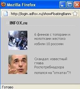 В РИА 'Новости' предполагают, что в сообщении ведомства 'речь, по всей видимости, идет о размещенном на сайте РИА Новости баннере Infox.ru под заголовком: «Скандал: известный глава Роспотребнадзора попался на «откатах»?!'.