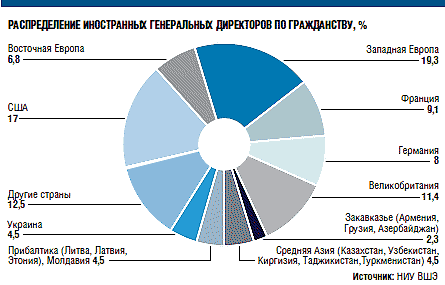 Экспаты не прижились в российских компаниях: по данным исследования, только около 13% топовых мест занимают иностранцы, причем, как правило, работают они в иностранных компаниях. Мода на экспатов проходит, считает г-жа Курантова. Экспаты — дорогое удовольствие, а выбор появился и на рынке отечественных руководителей. Сейчас иностранцев можно встретить в основном в транснациональных или зарубежных компаниях, где традиционно отдают предпочтение «своим». Публичные компании и крупные банки предпочитают выбирать иностранцев на должность финансовых директоров, говорит президент рекрутингового портала Superjob.ru Алексей Захаров. У них есть опыт работы с зарубежными рынками, на которых компания-работодатель присутствует или на которые планирует выходить. Но для работодателя важен не паспорт, а навыки управленца: хороший специалист-россиянин с дипломом MBA и опытом будет котироваться не меньше. «Но на рынке таких специалистов с качественным российским и зарубежным опытом крайне мало», — считает г-н Захаров.
