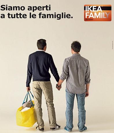 Родина IKEA Швеция является одной из немногих стран мира, где гомосексуальные пары полностью уравнены в правах с традиционными. Однополые браки в Швеции были легализованы 1 июня 2009 года. Официальная Италия, в свою очередь, не признает однополых союзов. Так, в 2007 году верхняя палата парламента Италии отказалась принимать закон о гражданском партнерстве, позволяющий формализовать отношения гомосексуальных пар.