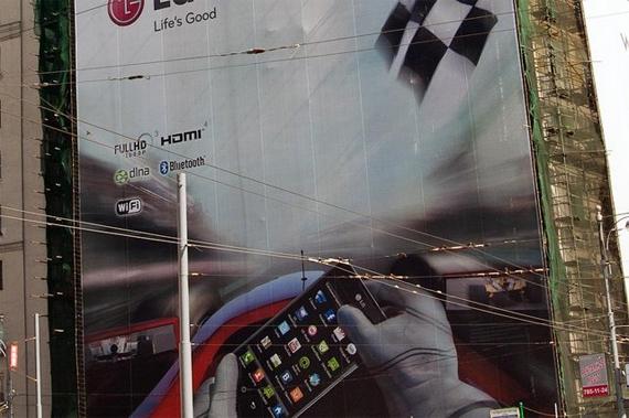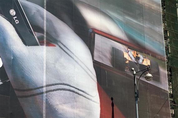 На рекламном баннере LG на Белорусской изображен болид Формулы-1, у которого вместо руля новый смартфон – LG Optimus 2x. Инсайт ясен – скорость, и, в общем, сделано все довольно хорошо. Однако при более внимательном изучении изображения оказывается, что в зеркалах заднего вида болида машины соперников едут в противоположную сторону. Похоже, это самый настоящий epic fail.