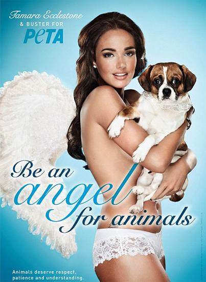 На постерах рекламной кампании Be an angel for animals ('Будь для животных ангелом') 26-летняя Тамара Экклстоун выступила в роли ангела. Это уже третья совместная кампания Экклстоун и PETA. Девушка впервые снималась в рекламе с одним из своих любимцев - псом по кличке Бастер. Всего у Экклстоун живет 5 собак.