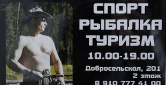 Очередное незаконное использование образов руководства страны для рекламы торговых точек зафиксировано во Владимире. Там на рекламе магазина для рыболовов изображен по пояс голый премьер-министр РФ со спинингом в руках