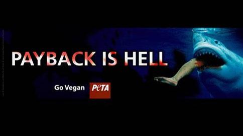 Борцы за права животных планируют поставить рекламный щит на острове Анны Марии во Флориде, с изображением акулы, кусающей в ногу человека. Слоган: «Ужасная расплата. Станьте вегетарианцами».