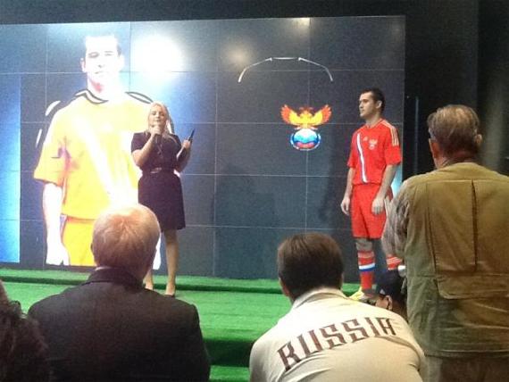 Нападающий Сборной России по футболу Александр Кержаков представил новую игровую форму команды. В этой высокотехнологичной экипировке, сборная будет играть на Евро-2012. которое пройдет в Украине и Польше.