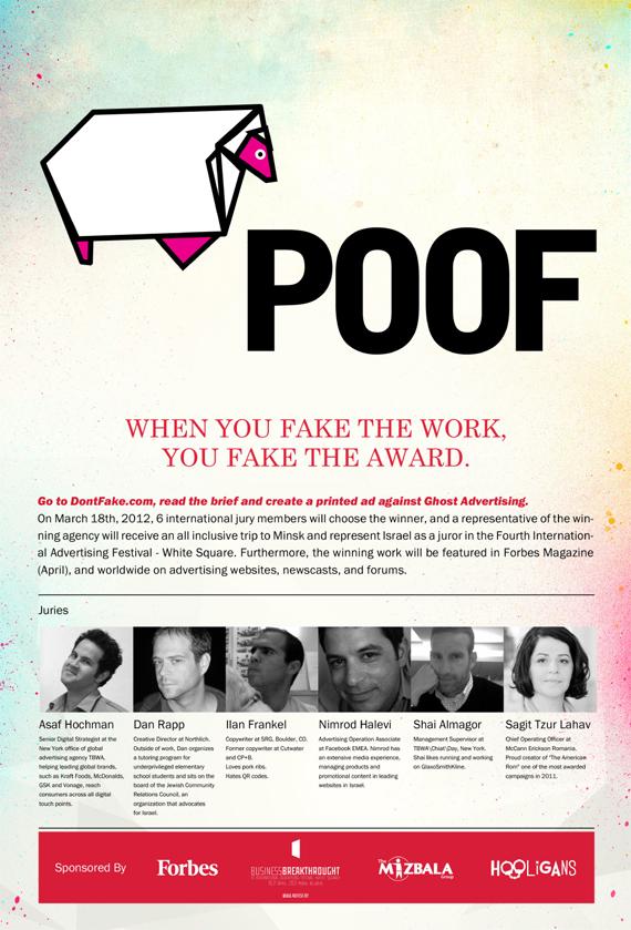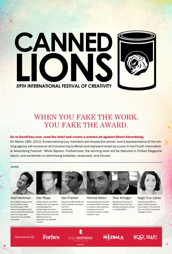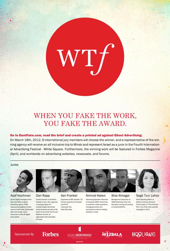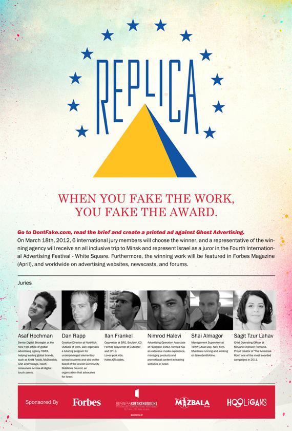 Кампания разработана в сотрудничестве с журналом Forbes – создан сайт DontFake.com, где проходит творческий конкурс, куда агентства могут присылать свои уникальные работы. Победитель получает приз – полностью оплаченную поездку в Минск на фестиваль и право представлять Израиль в жюри. Лучшие работы будут опубликованы в Forbes.