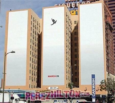 Вертикальный билборд представляет собой белое полотно с силуэтом мужчины в костюме, падающим вниз. Изображение отсылает к анимационной заставке сериала. Родственники жертв и очевидцы теракта утверждают, однако, что при виде этого изображения они вспоминают о погибших при теракте, так как многие из них расстались с жизнью, выпрыгнув или упав из горящих зданий. Так, одним из самых пронзительных символов теракта стала фотография падающего человека в офисной одежде фотографа Associated Press Ричарда Дрю (Richard Drew). По ней, в частности, был снят документальный фильм 'Падающий человек', раскрывающий историю фотографии и восприятие ее публикой.