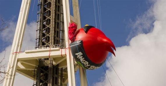 Огромная красная злобная птица – часть продвижения в Сиэтле игры Angry Birds Space, которая была выпущена 22 марта для платформ iOS и Android, персональных компьютеров и Mac. В игре используются физические силы гравитации, как и в оригинальной версии, но добавляется влияние крупных небесных тел, которые также могут добавить гравитационных сил.
