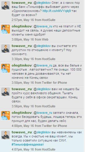 Неожиданно события развились совсем не туда, куда мы ожидали. В переписке с нашим аккаунтом Twitter Олег Тиньков решил прояснить свое отношение к клиентам банка.