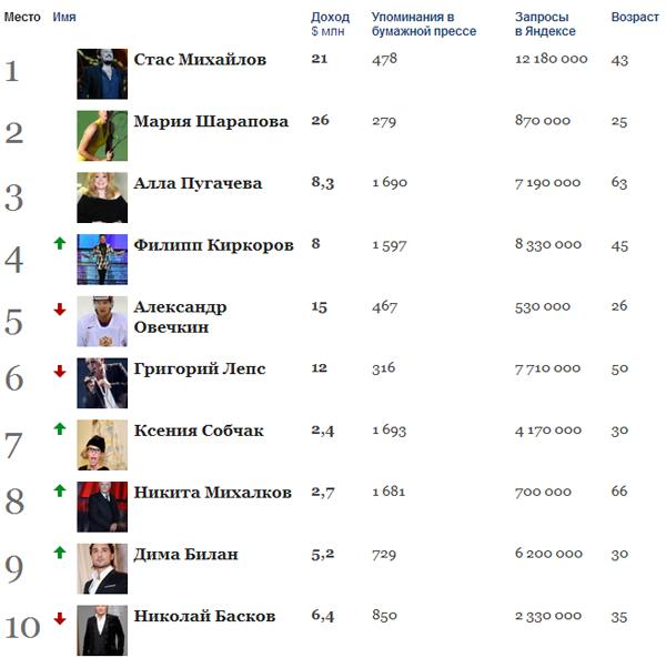 50 главных российских знаменитостей — 2012: рейтинг Forbes
