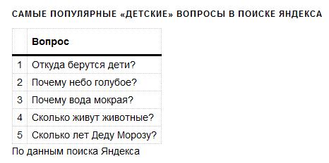 Иногда Яндексу задают и детские вопросы — [почему небо голубое] или [откуда