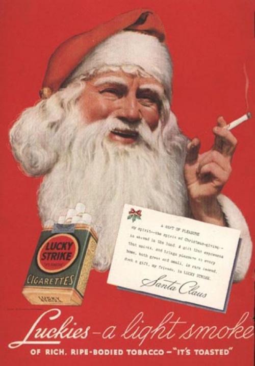 Ну, раз сам Санта-Клаус не гнушается выкурить сигаретку после тяжелого рабочего дня, то что уж до всех остальных? Кстати, этот образ активно использовался в рекламе. Например, у Camel была очень похожая со слоганом: «Счастливого Рождества всем курильщикам!».