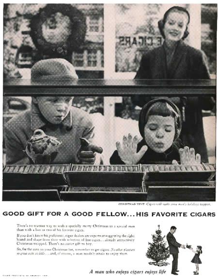 Ну и святое: детишечки. Посыл как бы в том, что семья пошла выбирать папе подарок на Новый год. Об этом свидетельствует небольшая приписка внизу –«Мужчина, который наслаждается курением, наслаждается и жизнью». Но на первый взгляд ощущение, что прилипшие к витрине дети и сами не прочь найти подобный презент под ёлкой.