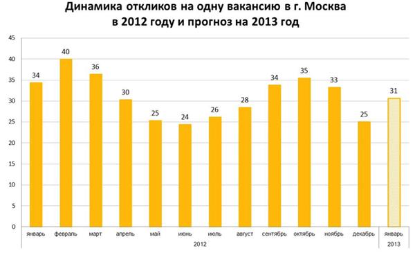 В январе 2013 года соискательская активность будет на уровне 31 отклика на одну вакансию.