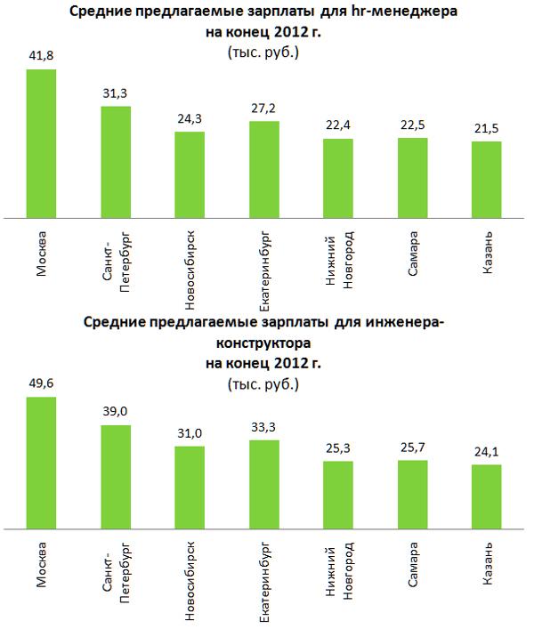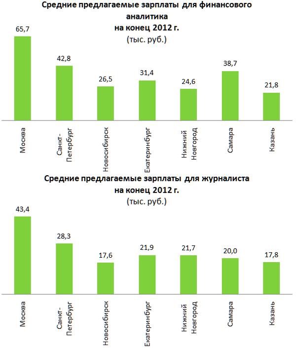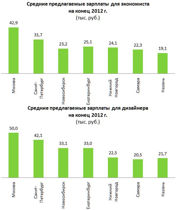 Ниже приведена текущая средняя зарплата на рынке труда Москвы у 10-ти профессий (юрист, Java-программист, бухгалтер, маркетолог, hr-менеджер, инженер-конструктор, финансовый аналитик, журналист, экономист, дизайнер), представляющих каждая свою проф.сферу и являющихся одной из основных в ней, по сравнению другими регионами.