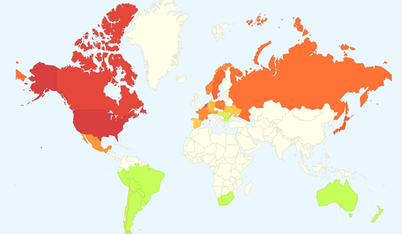 Это отличный инструмент для планирования поездок в конкретное время года и поиска возможно болеющих друзей, чтобы высказать им сочувствие. Эту карту определенно нужно положить в «закладки».