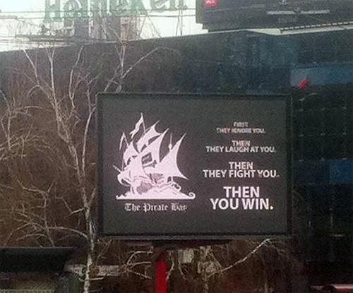 Примерно неделю назад на площади Республики в Белграде рекламный видеоэкран начал показывать рекламу пиратского файлообменного сайта The Pirate Bay