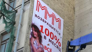 Рекламный баннер с лозунгом 'МММ возвращается' и адресом сайта Сергея Мавроди появился в понедельник на стене дома 16 на Зубовском бульваре. Уже в четверг утром он был снят сотрудниками технических служб как незаконно размещенный.