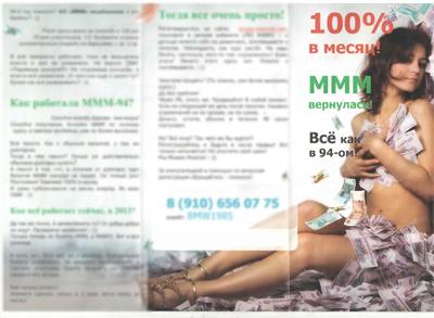 Хедлайн новой кампании – «Все, как в 94». Если кто забыл историю прошлой пирамиды МММ и масштабы мошенничества – вот некоторые факты. За полгода работы – с февраля до 4 августа 1994 года - число вкладчиков компании, по разным данным, достигло количества от 10 до 15 миллионов человек. Деньги не успевали пересчитывать, и их считали на глазок, комнатами: «12 комнат… 15 комнат…» По разным оценкам, в одной только Москве Мавроди зарабатывал тогда порядка 50 млн долларов в день. Мавроди задолжал обманутым вкладчикам МММ около 5 млрд рублей и был приговорен к 4,5 года лишения свободы за мошенничество. В мае 2007 года он вышел из тюрьмы, но уже в 2011 году запустил новый проект — «МММ-2011». Его участникам была обещана доходность в 20–30% в месяц.