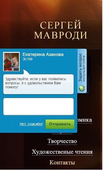 Зайдя на сайт, посетитель сразу получает обращение «консультантов». Основная цель которых, кроме толкования художественных глубин творчества Мавроди – транслировать посетителю заманчивость его очередного изобретения.
