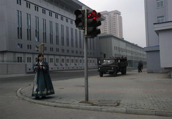 Самое поразительное в этих изображениях - непривычно большой объем свободного пространства. Вот фотографии уличных сцен из Пхеньяна, столицы Северной Кореи, и они прямо иллюстрируют резкий контраст с процветающей и наполненной суетой страной азиатских соседей.