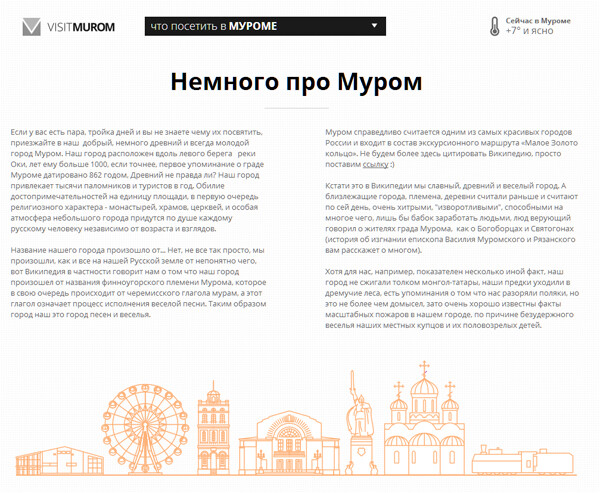 Маркетинг территорий – сравнительно новое для России направление. Но это направление становится у нас все более популярным. Страницы городов с рассказами о событиях, истории и достопримечательностях создают местные власти, туристические организации или просто группы энтузиастов. Но иногда желание как можно скорее похвастаться новым сайтом перед публикой или перед заказчиками заводит слишком далеко.