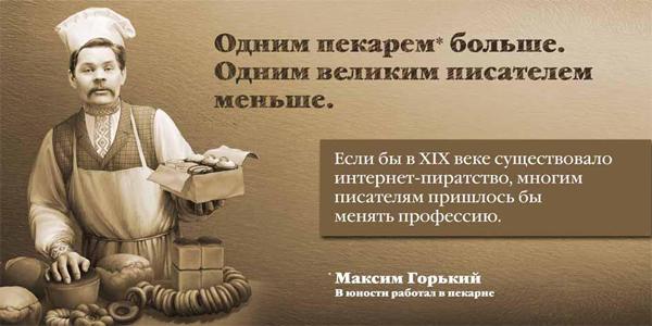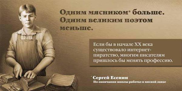 Главная идея состоит в том, чтобы подчеркнуть: если бы 100 лет назад существовало интернет-пиратство, писатели были бы вынуждены не творить, а заниматься другой деятельностью.